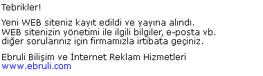 Ebruli bilişim ve internet reklam hizmetleri - İstanbul - www.ebruli.com Firmamız, internet reklam hizmetleri, google reklam hizmeti, internet reklamcılığı, arama motoru kayıt, google optimizasyonu, googleda reklam, web tasarımı, web sitenizi google ilk sayfalarda çıkartmak, internette reklam, arama motorlarına kayıt, web sitesi yenileme, web sitesi güncelleme, SEO hizmetleri, arama motoru optimizastonu, yahoo reklam hizmetleri, msn reklam hizmetleri ve web reklam hizmetleri vermektedir. |